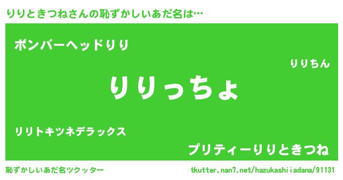 | 男性向けラノベタイトル風あだ名 | 『りりときつね~年齢イコール彼女いない歴の魔法使い~』 |