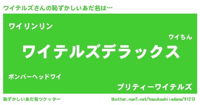 | 男性向けラノベタイトル風あだ名 | 『Re:ワイテルズから始める異世界生活』 |