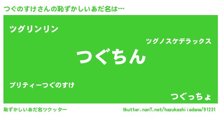 | 意味不明あだ名 | 『永久保存つぐのすけ』『自称つぐのすけ』 |