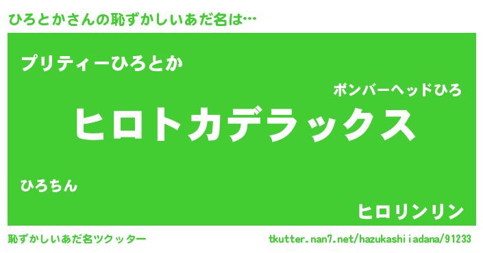 | ヒーロー風カッコイイあだ名 | 『サイバー戦士ヒロトカ』『魔戒騎士ヒロ』 |