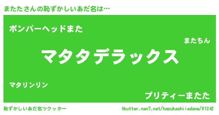 | 意味不明あだ名 | 『住所不定無職またた(13歳)』『自称またた』 |