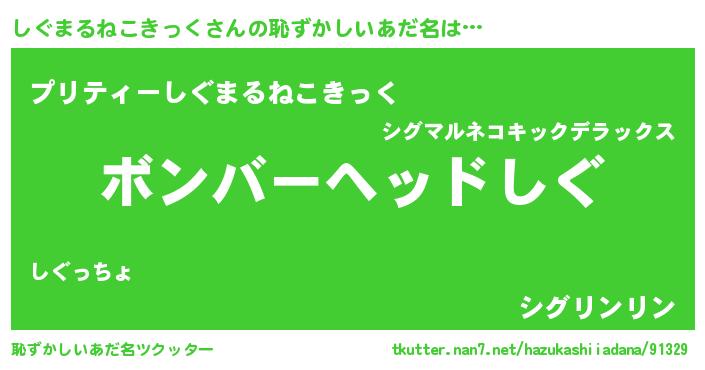 | 意味不明あだ名 | 『眠気覚ましガムしぐまるねこきっく味』 |