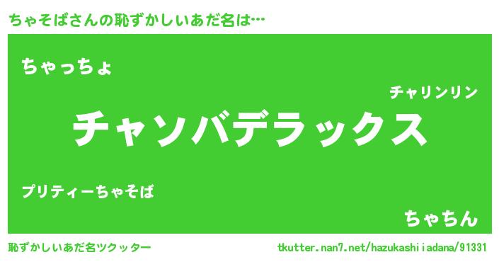 | 男性向けラノベタイトル風あだ名 | 『チャソバスレイヤー』 |