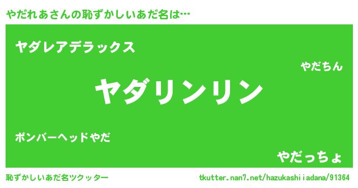 | 意味不明あだ名 | 『とにかく怪しいやだれあ』 |