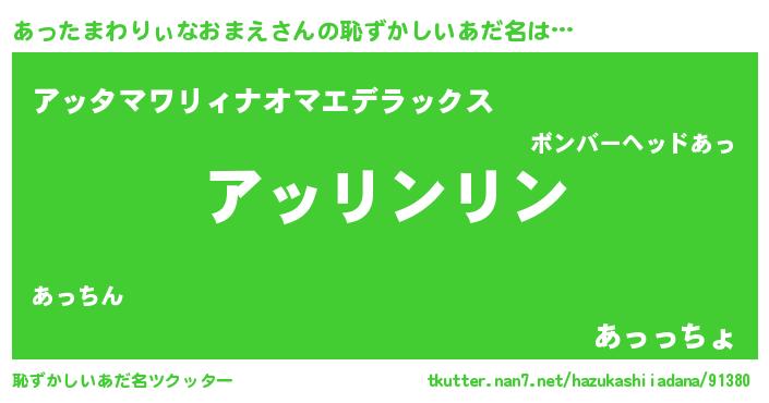 | 男性向けラノベタイトル風あだ名 | 『緋弾のアッタマワリィナオマエ』 |