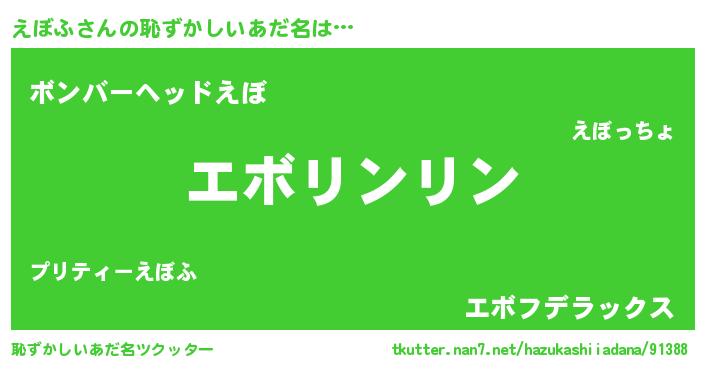 | 意味不明あだ名 | 『住所不定無職えぼふ(6歳)』『自称えぼふ』 |