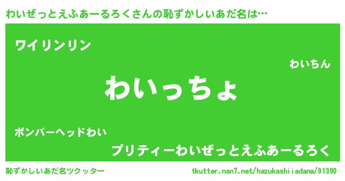 | 意味不明あだ名 | 『わいぜっとえふあーるろくフォーエバー』 |