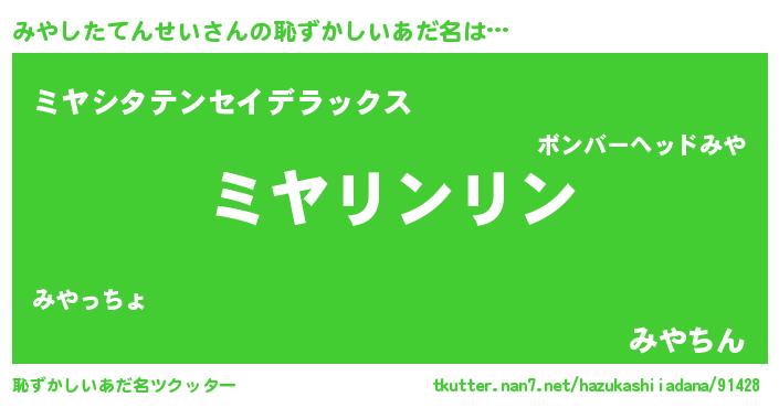 | ポケモン風あだ名 | 『ミヤゴンZ』『ヒミヤシタテンセイ』 |
