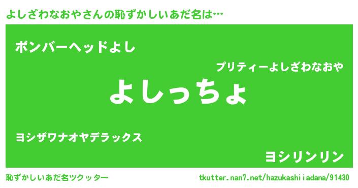 | ポケモン風あだ名 | 『ヨシザダネ』『ヨックウザ』 |