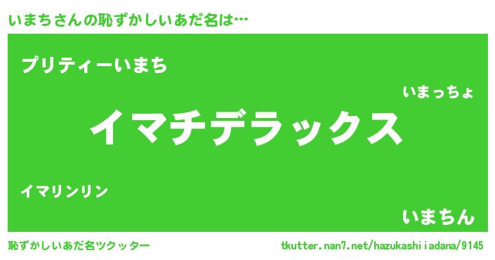 | ヘコむあだ名 | 『いまにゅー』『いまち(爆)』『豆乳』 |