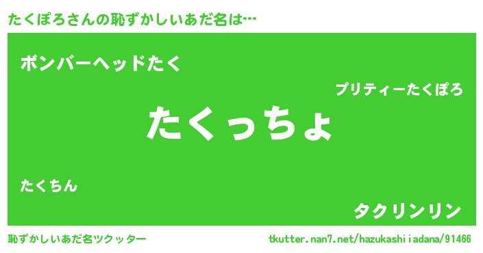 | 伝説のあだ名 | 『秘められし忍者たくぽろ』 |