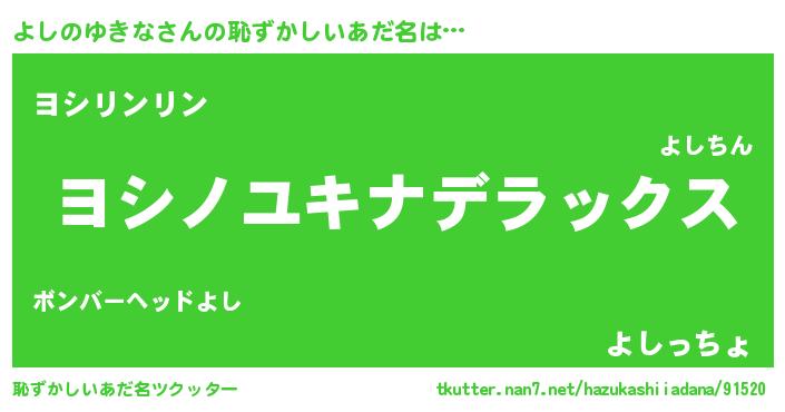 | 欧米人風あだ名 | 『ケンブリッジよしのゆきな』 |