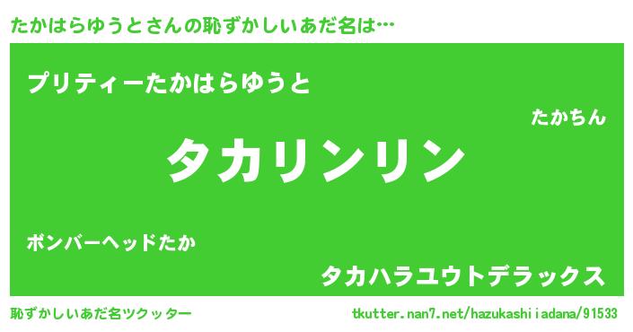 | 女子向けラノベタイトル風あだ名 | 『たかはらゆうとは平凡を望む』 |