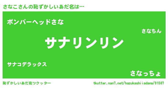 | 欧米人風あだ名 | 『ウサインさなこ』『ダニエルさなこ』 |