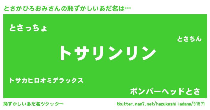 | ヒーロー風カッコイイあだ名 | 『暗黒騎士トサ』『ネオトサカヒロオミ』 |