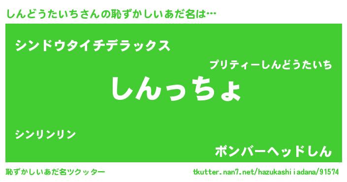 | 男性向けラノベタイトル風あだ名 | 『うちのしんどうたいちが世界を掌握している!』 |