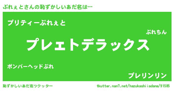 | ポケモン風あだ名 | 『プーレイ』『プレセウス』 |