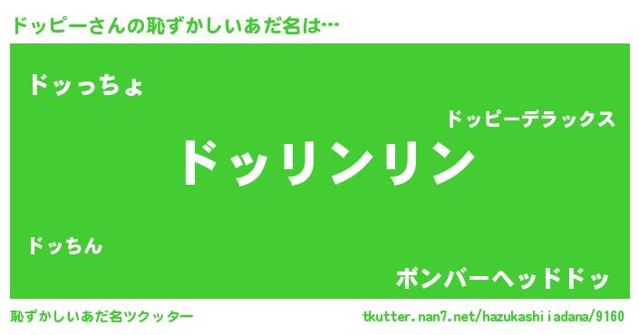 | 男性向けラノベタイトル風あだ名 | 『ドッピーの嫁は女の子じゃないと思った?』 |
