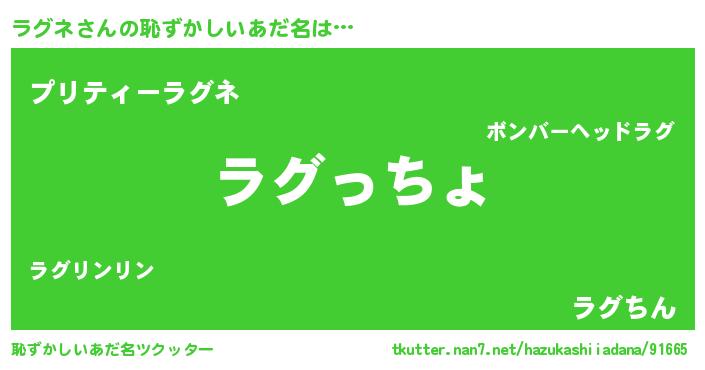 | ポケモン風あだ名 | 『ラグネダネ』『ラーグイ』 |