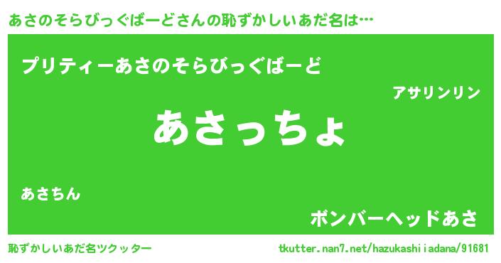 | ファンタジー風あだ名 | 『エターナルアサノソラビッグバードー』 |