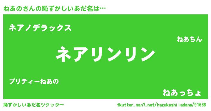 | ヘコむあだ名 | 『ねあを』『豆乳』『ねあの(苦笑)』 |