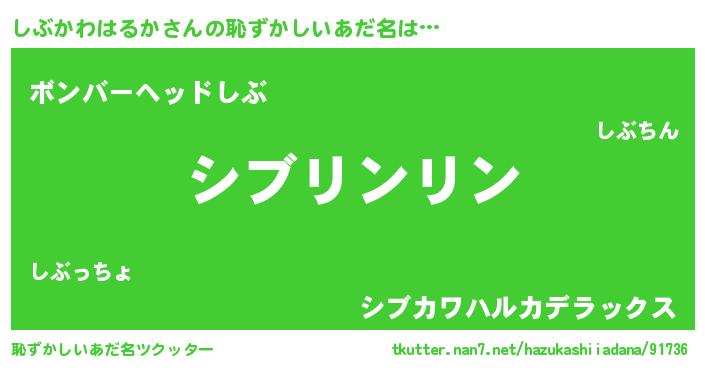 | ヘコむあだ名 | 『しぶぷりん』『しぶかわはるか(小並感)』 |