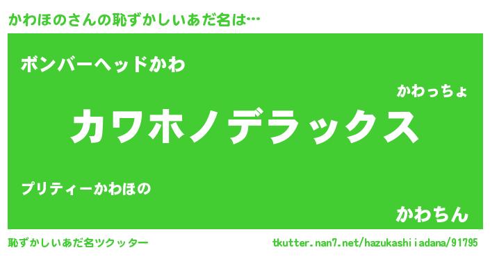 | ヒーロー風カッコイイあだ名 | 『サイバー戦士カワホノ』『仮面カワダー』 |