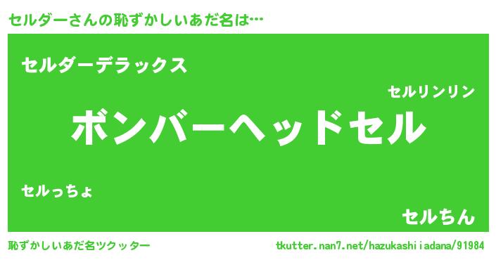 | ヒーロー風カッコイイあだ名 | 『仮面セルダー』『正義の使者セルダー』 |