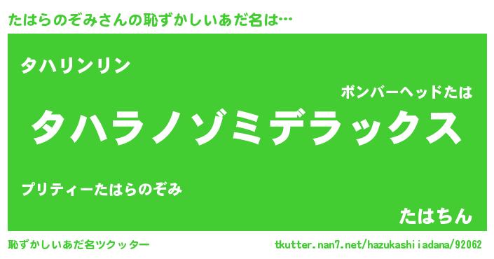 | ヘコむあだ名 | 『たはお』『たはらのぞみ(爆)』 |