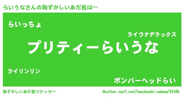 | ヘコむあだ名 | 『らいにー』『なまこ酢』『らいっぺ』 |