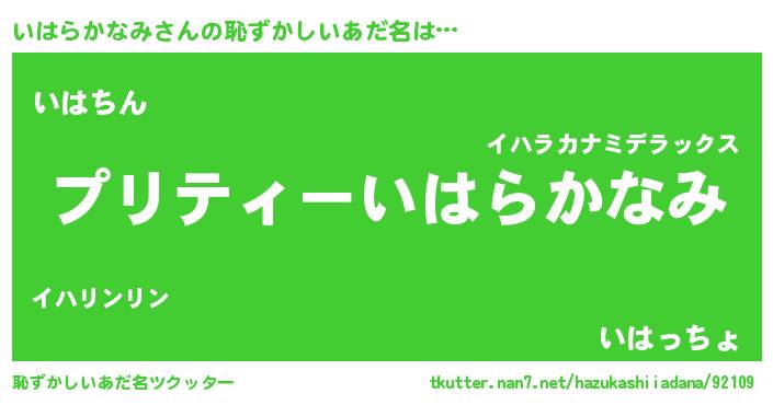 | ヒーロー風カッコイイあだ名 | 『スーパーイハラカナミ』『仮面イハダー』 |