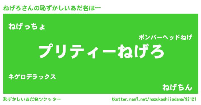 | ヒーロー風カッコイイあだ名 | 『スーパーネゲロ』『ウルトラねげろマン』 |