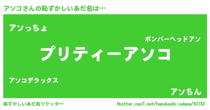 | ファンタジー風あだ名 | 『アソフェル』『エターナルアソコー』 |