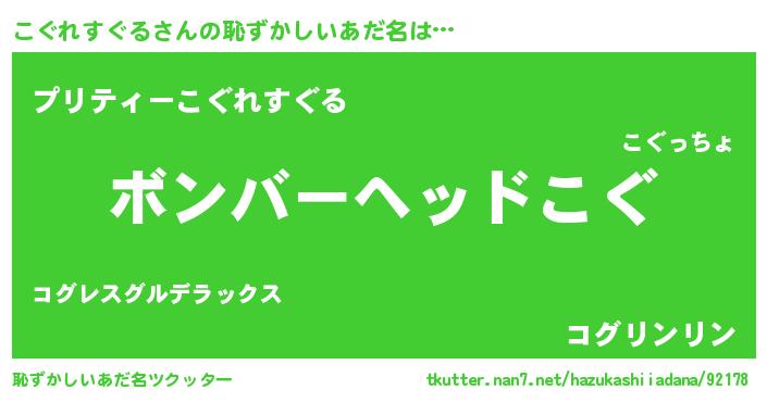 | ヒーロー風カッコイイあだ名 | 『慈愛の使者こぐれすぐる』 |
