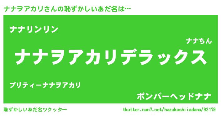 | ヘコむあだ名 | 『ナナぷりん』『ナナヲアカリ(笑)』 |