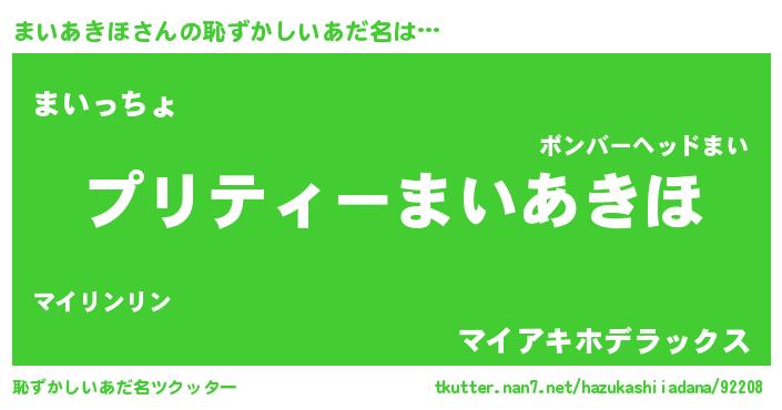 | ヒーロー風カッコイイあだ名 | 『スーパーマイアキホ』『黄金騎士マイ』 |