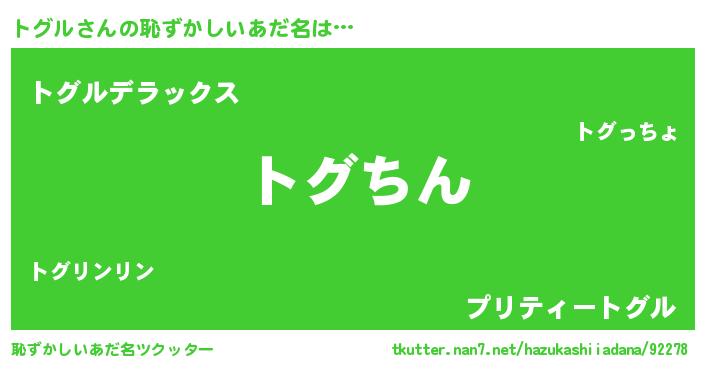 | ポケモン風あだ名 | 『トグキング』『トグゴンZ』 |