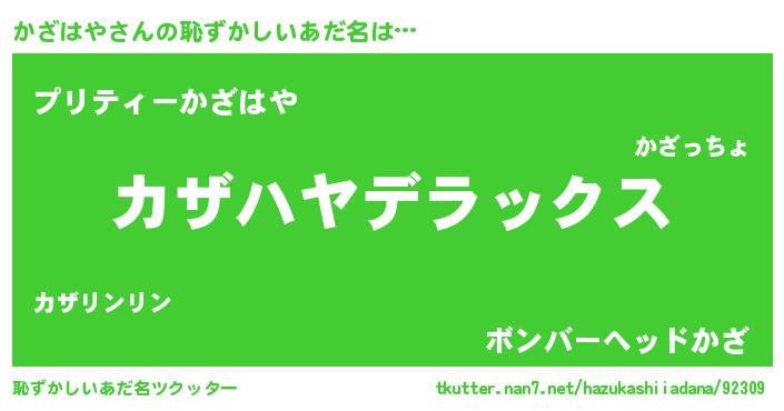 | 男性向けラノベタイトル風あだ名 | 『Re:かざはやから始める異世界生活』 |