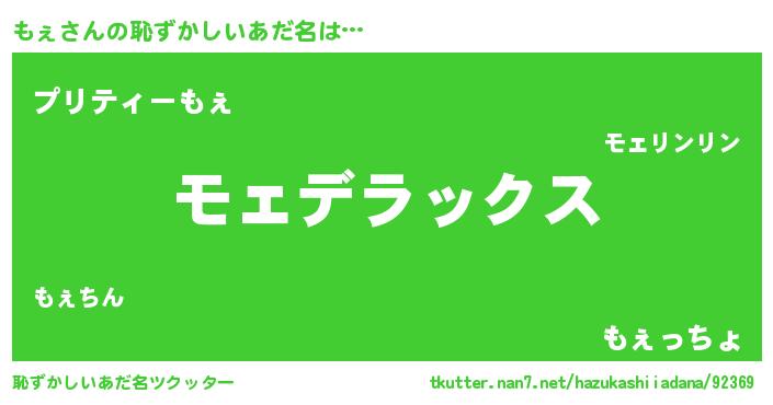 | 女子向けラノベタイトル風あだ名 | 『もぇなんてお断りですっ。』 |