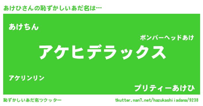 | ヒーロー風カッコイイあだ名 | 『超時空戦士アケヒ』『ネオアケヒ』 |