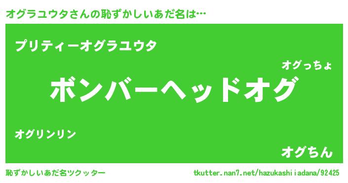 | 欧米人風あだ名 | 『トリンドルオグラユウタ』 |