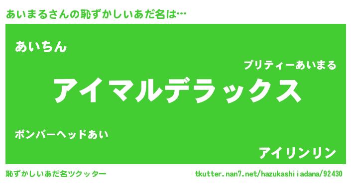 | ヘコむあだ名 | 『あいまる(爆)』『あいっちょ』 |