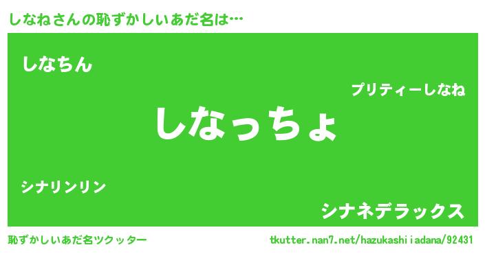 | 欧米人風あだ名 | 『トリンドルしなね』『ダレノガレしなね』 |