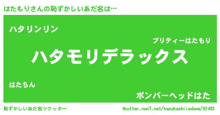 | ヒーロー風カッコイイあだ名 | 『究極戦士ハタモリ』『炎刃騎士ハタ』 |