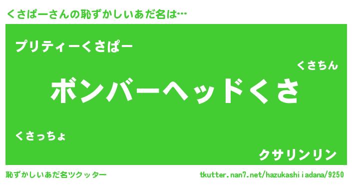 | ヒーロー風カッコイイあだ名 | 『愛の使者くさぱー』『スーパークサパー』 |