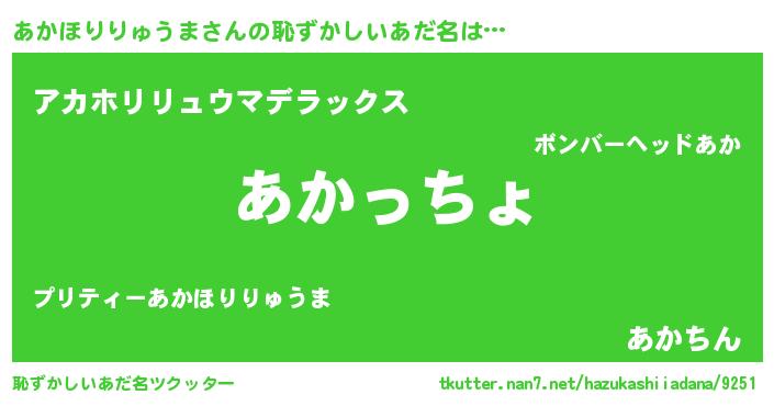 | 男性向けラノベタイトル風あだ名 | 『転生したらあかほりりゅうまだった件』 |
