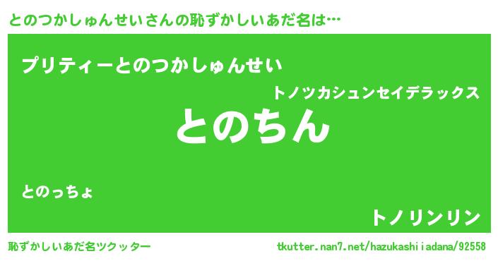 | ヘコむあだ名 | 『とのつかしゅんせい(笑)』『とのにー』 |