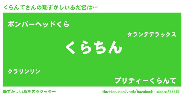 | 意味不明あだ名 | 『永久保存くらんて』『ペロリンくらんて』 |