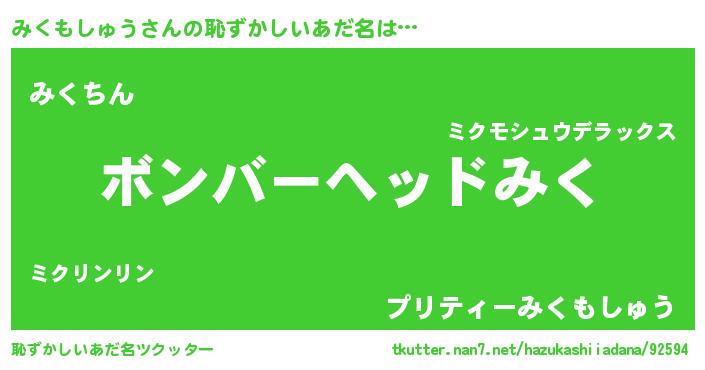 | ヘコむあだ名 | 『みくもしゅう(震え声)』『みくっふぃ~』 |