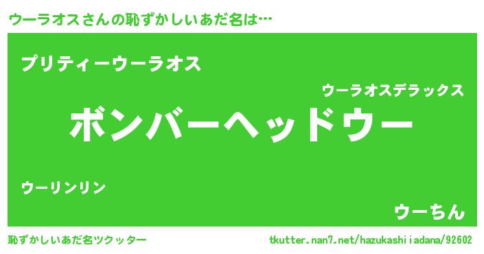| ヘコむあだ名 | 『ウーにー』『ウーラオス(笑)』 |